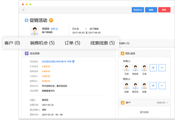 市場(chǎng)活動(dòng)產(chǎn)生的線索、客戶、機(jī)會(huì)、訂單直接關(guān)聯(lián),科學(xué)評(píng)估營(yíng)銷(xiāo)成效