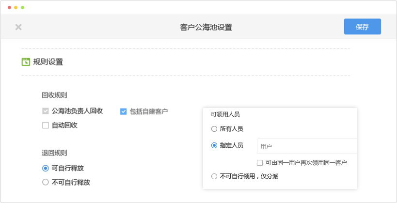 將客戶和線索放入公海, 資源不斷分配、不斷沉淀,實(shí)現(xiàn)充分利用、永不流失