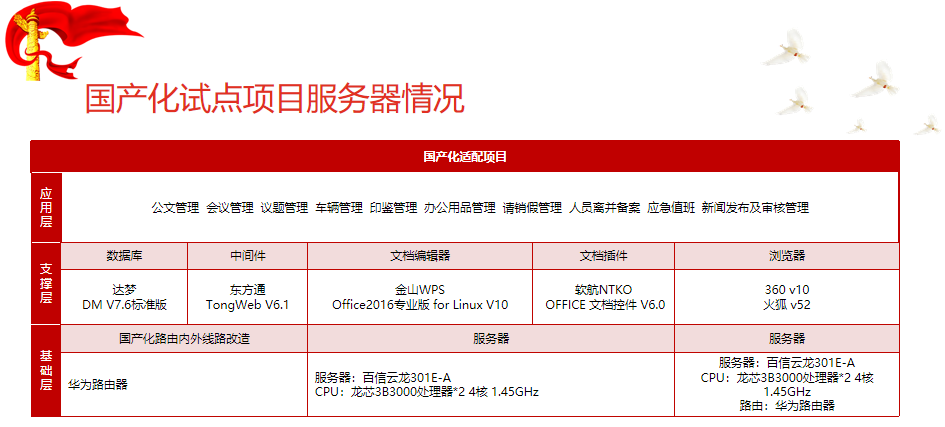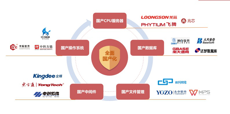 作為信創(chuàng)產(chǎn)業(yè)鏈的重要一環(huán),自主安全協(xié)同辦公系統(tǒng)積極尋求上下游的國產(chǎn)化改造解決方案,調(diào)優(yōu)適配國內(nèi)主流的自主安全服務(wù)器、操作系統(tǒng)、中間件和數(shù)據(jù)庫的運行環(huán)境,確保系統(tǒng)穩(wěn)定性、安全性、擴展性與實用性,保障數(shù)據(jù)安全,實現(xiàn)自主安全、高效協(xié)同。