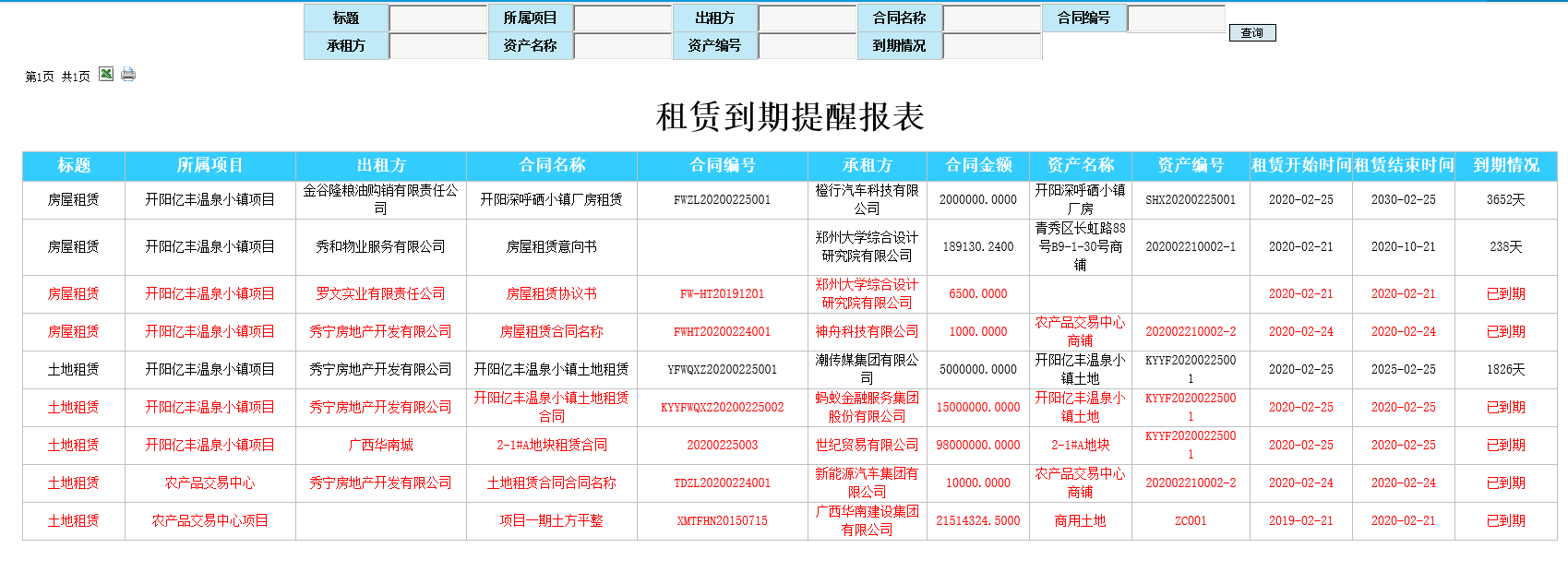 包括:資產(chǎn)產(chǎn)權(quán)使用分析、年度/季度/月度資產(chǎn)岀租分析、合同預(yù)期收益統(tǒng)計(jì)分析、租金實(shí)際收繳分析、合同到期預(yù)警分析、租金預(yù)期繳款分析等。