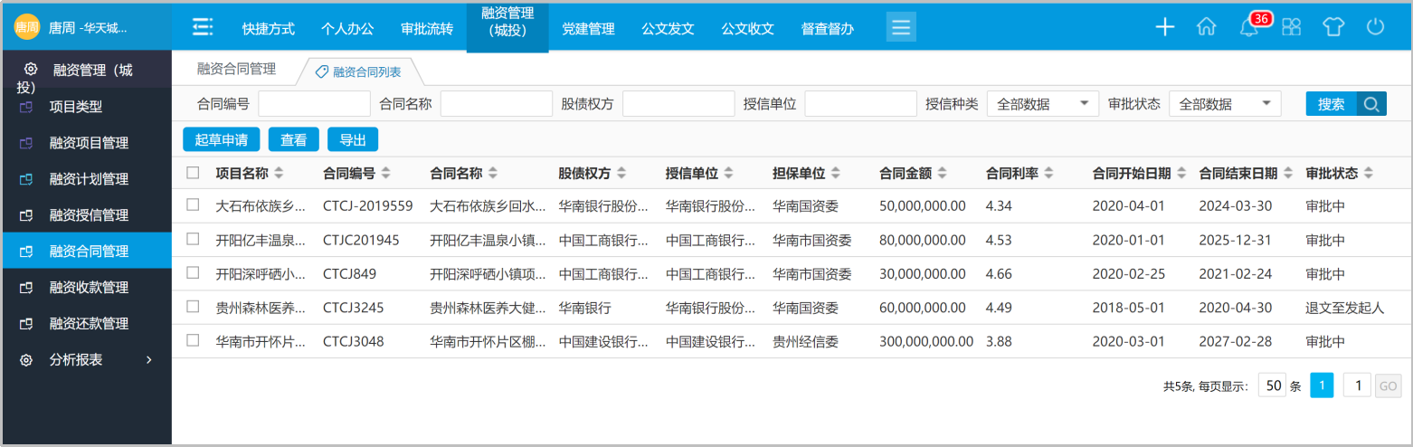 融資授信管理是對獲得金融機(jī)構(gòu)的授信額度和使用情況的管理功能,分別針對授信種類、授信時(shí)間、抵(質(zhì))押物、所有權(quán)人進(jìn)行詳細(xì)記錄,支持與具體的融資合同進(jìn)行關(guān)聯(lián),對自動占用信息能夠記錄及統(tǒng)計(jì)查詢。