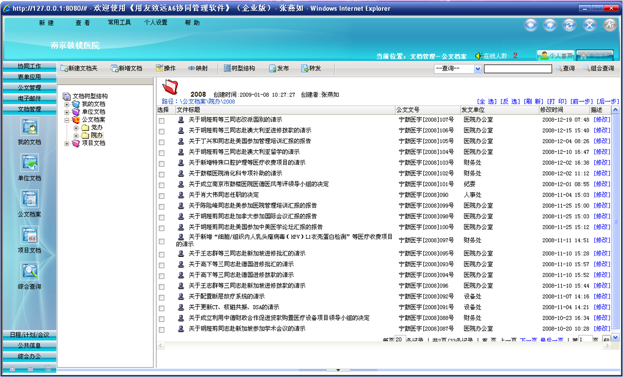 系統(tǒng)覆蓋鼓樓醫(yī)院3個(gè)院區(qū),6個(gè)總支,72個(gè)科處室,2858位用戶!